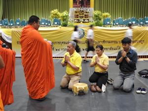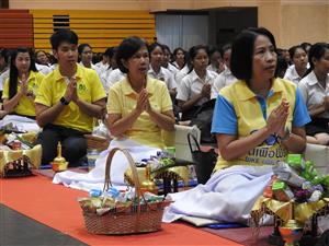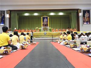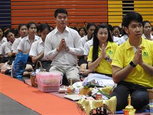 เวลา 07.00 น. พิธีทำบุญตักบาตรพระสงฆ์ 67 รูป ณ ศูนย์กีฬากาญจนาภิเษก รัชกาลที่ 9 ภายในมหาวิทยาลัยแม่โจ้ โดยมีอาจารย์ชัช พชรธรรมกุล รองอธิการบดีมหาวิทยาลัยแม่โจ้ เป็นประธานฝ่ายฆราวาสพร้อมด้วยคณะผู้บริหารมหาวิทยาลัย คณาจารย์ บุคลากร และนักศึกษาร่วมพิธีเป็นจำนวนมาก