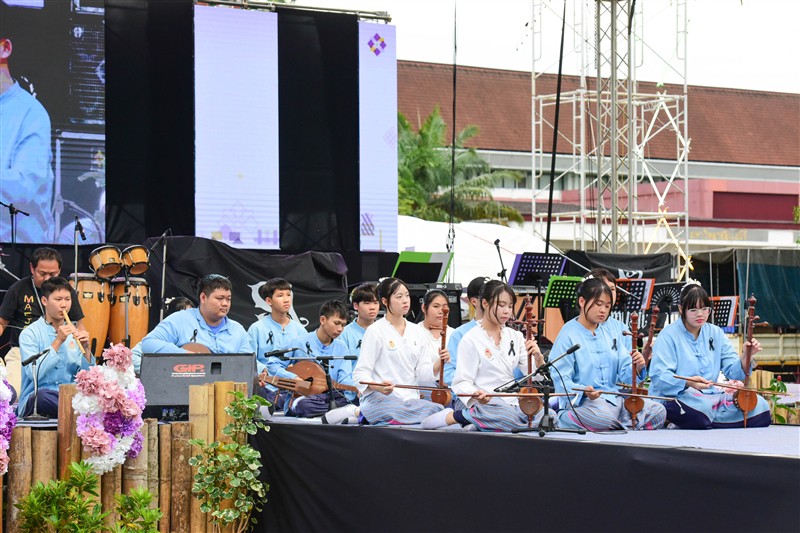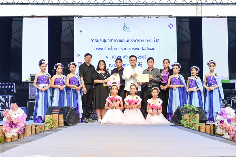 เมื่อวันที่ 4 -10 พฤศจิกายน 2568 กองส่งเสริมศิลปวัฒนธรรม มหาวิทยาลัยแม่โจ้ ได้รับมอบหมายรับผิดชอบฝ่ายกิจกรรมการแสดงดนตรีและศิลปวัฒนธรรม งานประชุมวิชาการและนิทรรศการ ครั้งที่ 12 “ทรัพยากรไทย : หวนดูทรัพย์สิ่งสินตน” โดยได้จัดเวที ระบบแสงสีเสียง และจัดการแสดง ณ เวทีการแสดงศิลปวัฒนธรรม ซึ่งมีการแสดงจากโรงเรียน สถาบันต่างๆ และเครือข่ายจากทั่วประเทศ นำการแสดงมาแสดงให้ผู้เข้าร่วมงานได้ชม