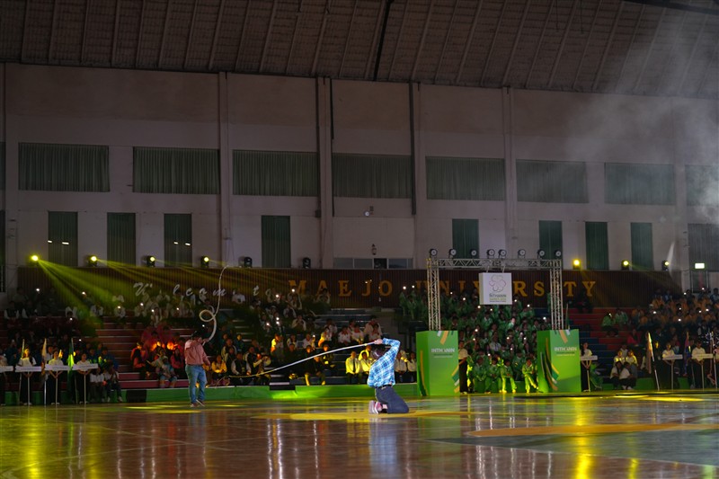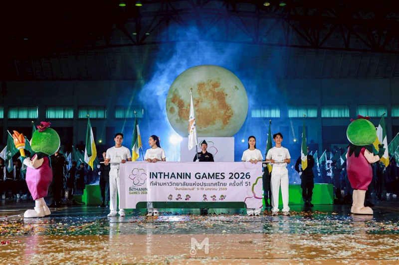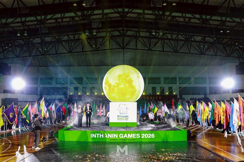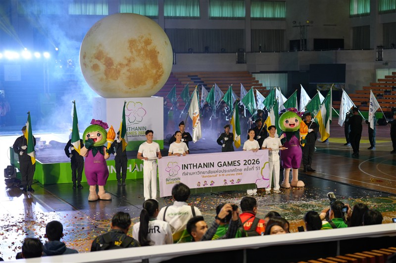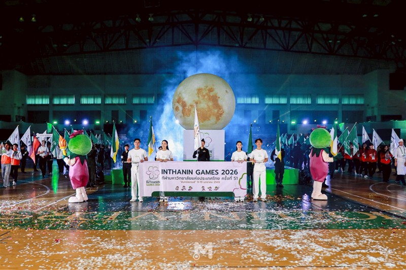 ภาพบรรยากาศพิธีเปิดการแข่งขันกีฬามหาวิทยาลัยแห่งประเทศไทย ครั้งที่ 51 “อินทนิลเกมส์ 2026” โดยกองส่งเริมศิลปวัฒนธรรมได้รับมอบหมายให้ดำเนินการฝ่ายจัดพิธีเปิดและพิธีส่งมองธง พิธีเปิดได้รับเกียรติจาก ดร.วันนี นนท์ศิริ หัวหน้าผู้ตรวจราชการ กระทรวงการอุดมศึกษา วิทยาศาสตร์ วิจัยและนวัตกรรม เป็นประธานเปิดงาน และ รองศาสตราจารย์ ดร.ชูสิทธิ์ ประดับเพชร ประธานคณะกรรมการกีฬามหาวิทยาลัยแห่งประเทศไทย (กกมท.) กล่าวรายงาน โอกาสนี้ รองศาสตราจารย์ ดร.วีระพล ทองมา อธิการบดีมหาวิทยาลัยแม่โจ้ กล่าวต้อนรับ คณะนักกีฬาและผู้ร่วมงานกว่า 100 สถาบันที่เข้าร่วมงาน