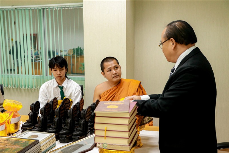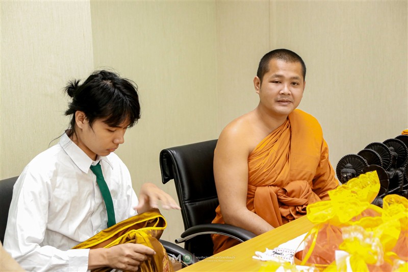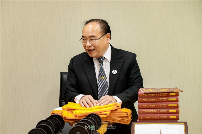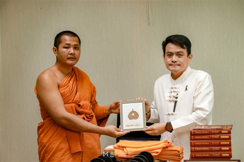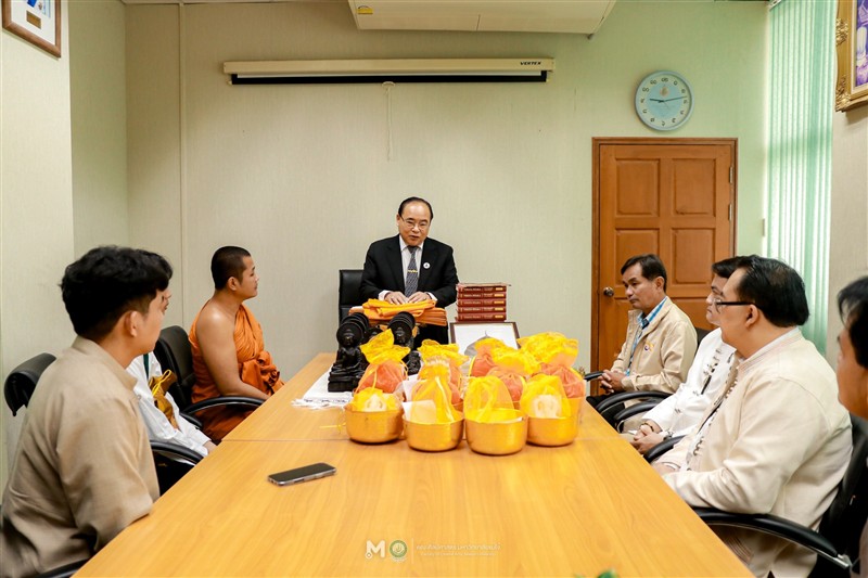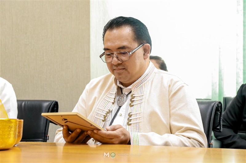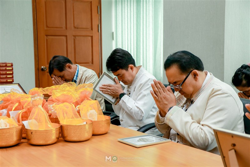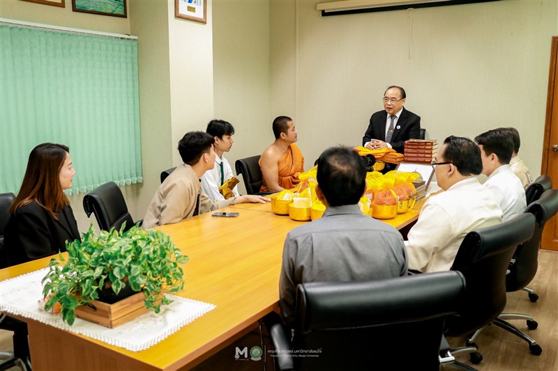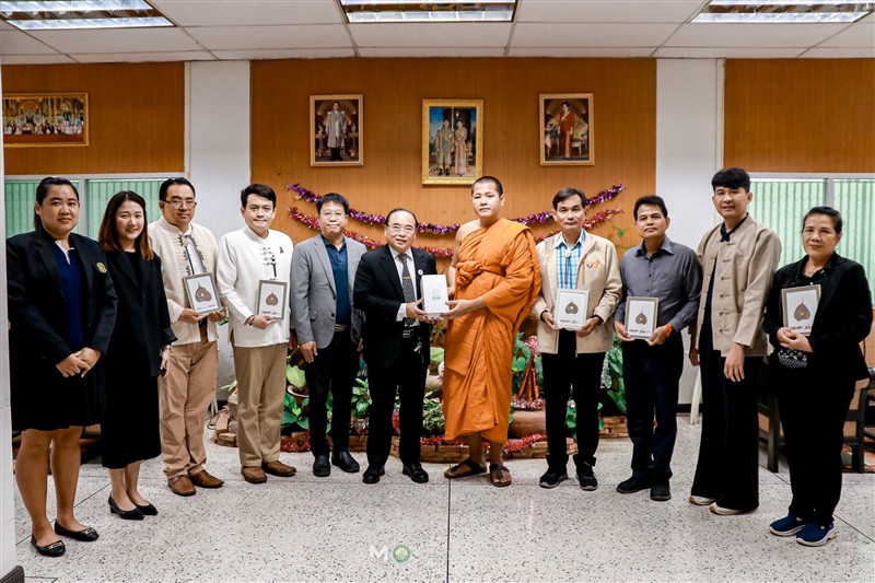24 กุมภาพันธ์ 2569 ผู้อำนวยการกองส่งเสริมศิลปวัฒนธรรมพร้อมด้วยหัวหน้างานอำนวยการร่วมรับมอบผ้าไตรพระราชทานจาก พระสมุห์ ตะวัน ถิรจิตโต (จันศิริ) ศิษย์เก่าแม่โจ้ รุ่น 81 ที่ได้รับจากโครงการ “เรือหลวงแห่งธรรมนำสู่แดนพุทธภูมิ” พร้อมสิ่งมงคลล้ำค่าจากวัดไทยพุทธคยา สาธารณรัฐอินเดีย อาทิ พระไตรปิฎกฉบับนานาชาติ ผ้ามงคลจากองค์พระเจดีย์พุทธคยา พระพุทธรูปที่ผ่านพิธีสำคัญจากเรือหลวงแห่งธรรมฯ ล็อกเกตและภาพพระพุทธเมตตาจำลอง ใบโพธิ์จากต้นพระศรีมหาโพธิ์พุทธคยา รวมถึงพระคเณศศิลาขาว รวมทั้งสิ้น 7 รายการ แด่มหาวิทยาลัยแม่โจ้ โดยมีรองศาสตราจารย์ ดร.วีระพล ทองมา อธิการบดีมหาวิทยาลัยแม่โจ้ พร้อมด้วย อาจารย์ ดร.ศรัณย์ จันทร์ทะเล คณบดีคณะศิลปศาสตร์ มหาวิทยาลัยแม่โจ้ ผู้บริหารคณะฯ เป็นผู้รับมอบวัตถุมงคลเพื่อความเป็นสิริมงคลแก่ผู้บริหาร คณาจารย์ บุคลากร และนักศึกษา ณ ห้องประชุม 401 อาคารสำนักงานมหาวิทยาลัย มหาวิทยาลัยแม่โจ้